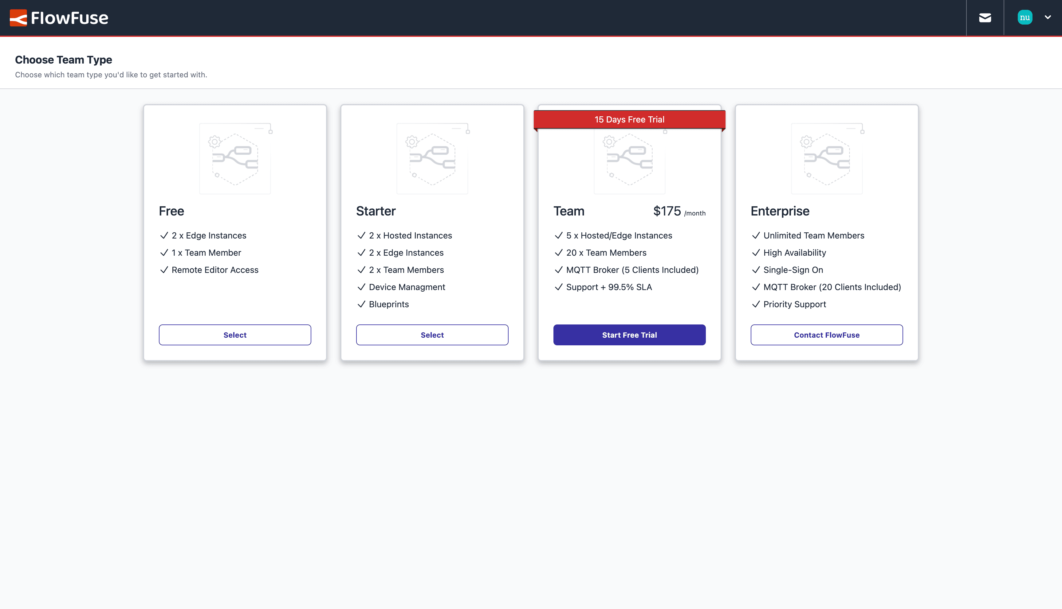 After careful consideration, we've decided to withdraw the free plan. You can still sign up for a 2 week trial to experience all that FlowFuse has to offer, or try out our Starter plan for $20/month.